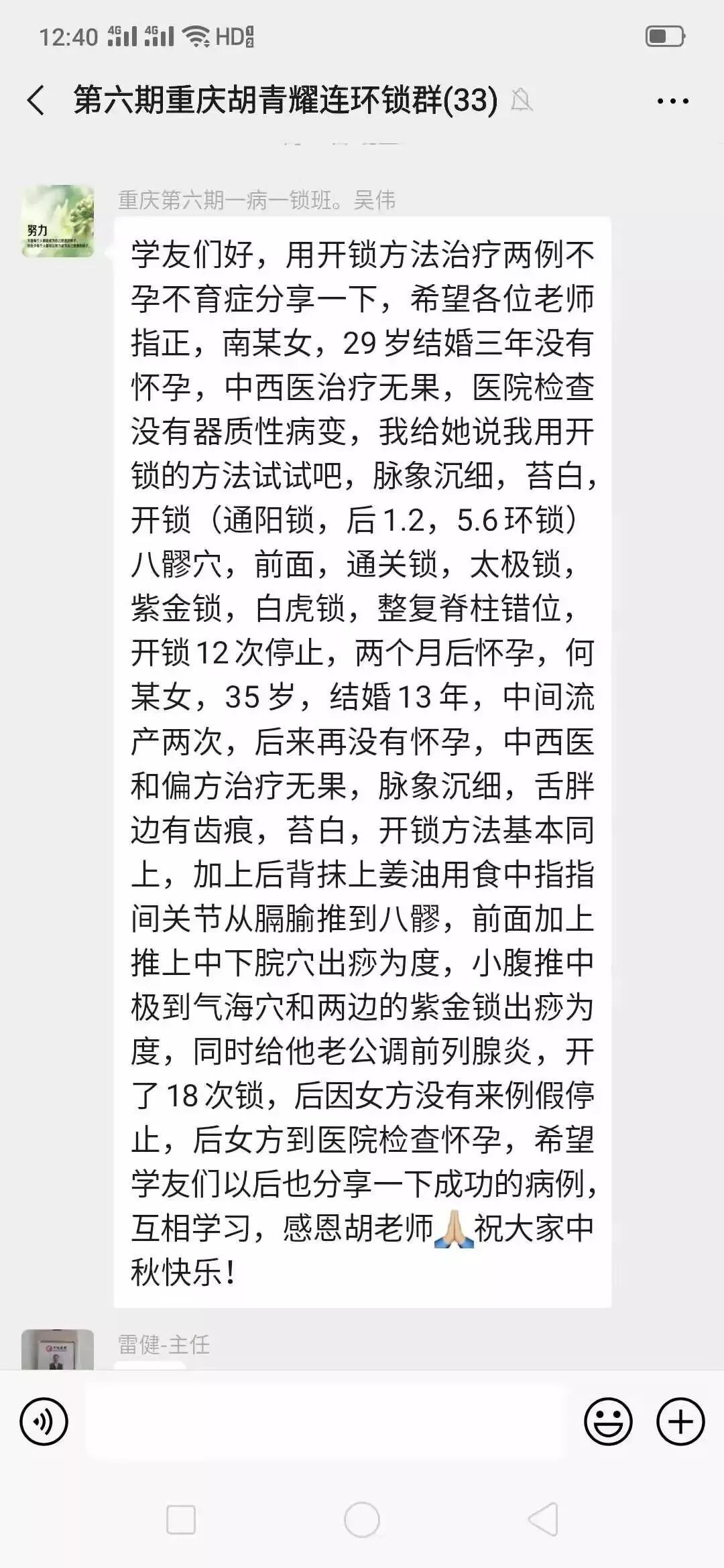 4.月经病(月经提前、推迟、先后无定期):一次恢复70%左右,一到三个疗程恢复99%,手法以太极锁,内四环锁为主;