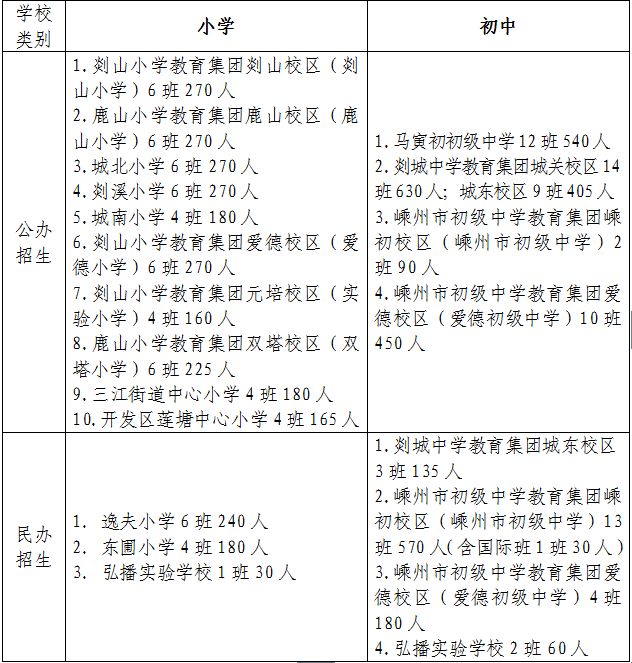 备注:各校实际招生人数需根据施教区内符合条件的新生报名情况适当调整,原则上不超过省定、绍兴市定班额。