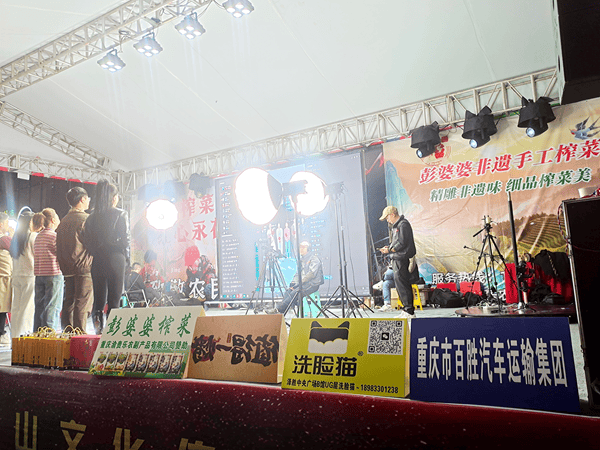 一场成功的文化活动离不开社会各界的鼎力支持。此次“涪陵大舞台”得到了重庆市百胜汽车运输集团、彭婆婆非遗手工榨菜(重庆渝贵乐农副产品有限公司)、重庆市丹渝食品有限公司、值得一烤、洗脸猫单位的大力支持与赞助。作为回报,每位登台献艺的选手都获得了一份由彭婆婆提供的系列榨菜产品,让他们在展现才华的同时,也品尝到了来自涪陵的地道美味。