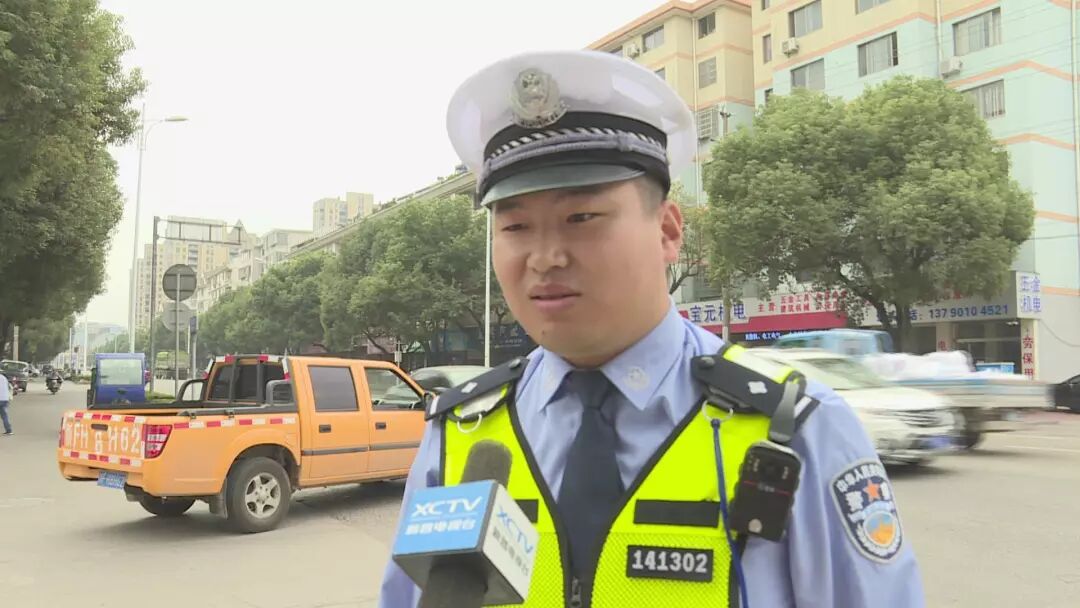 事情发生在10月8日。上午7点多,县公安局交警大队七星中队副中队长韩寸苇和他的同事一起,在七星街道大道西路协和医院路口执勤,发现一辆电动车违反规定,行驶在机动车道上,交警立即示意车主靠边停车。