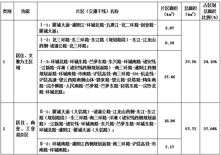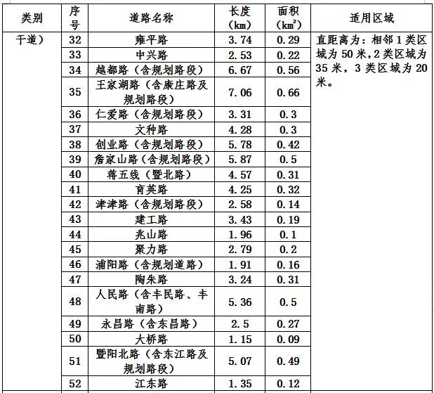 诸暨市城市区域声环境功能区