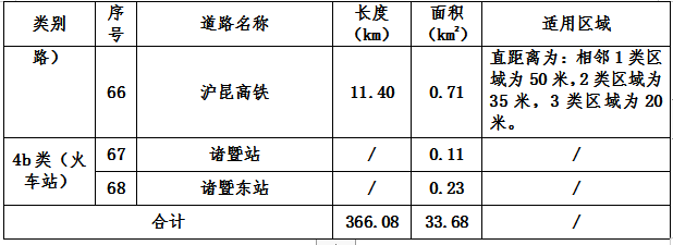 诸暨市城市区域4类声环境功能区