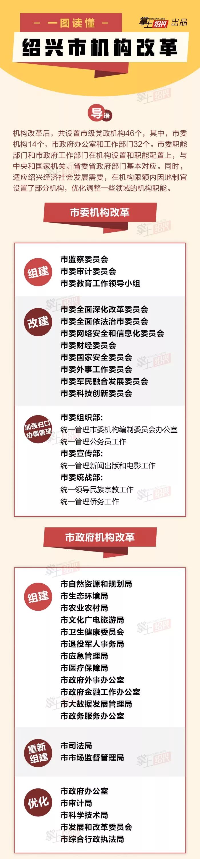 按照全省统一部署,市县机构改革将于明年3月底前基本完成。看看绍兴怎么改吧!