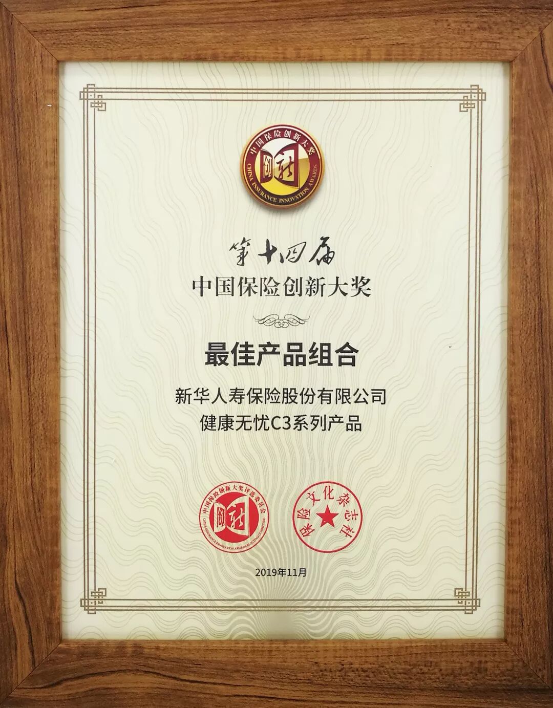 新华保险揽获三项大奖:公司获“年度最佳寿险公司”奖、入围“中国保险慈善榜”,健康无忧C3系列产品获“最佳产品组合”奖。
