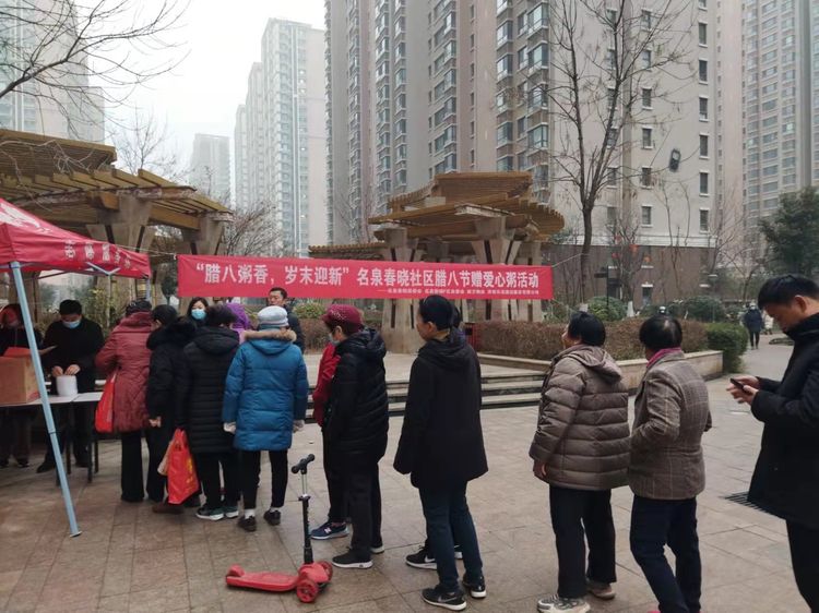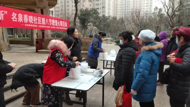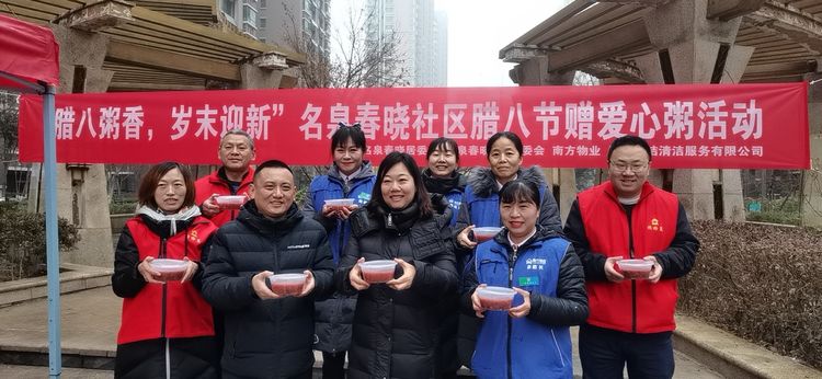 为弘扬中国传统文化,增加节日氛围,增进社区和居民群众的感情,1月10日清晨,名泉春晓社区联合名泉春晓F区业委会、南方物业和济南乐洁清洁服务有限公司,在小区广场,免费邀请社区群众共品腊八粥。