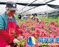4月6日,在柯岩街道河塔村的“阿金花卉”花木基地,花农对盆景杜鹃进行整理、摘花,为下一步迁插培植作准.. |