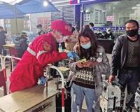 诸暨火车站的执勤人员正在检查旅客的健康码