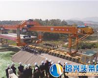 杭绍台铁路2标首榀箱梁架设仪式在打铁岭大桥施工现场..